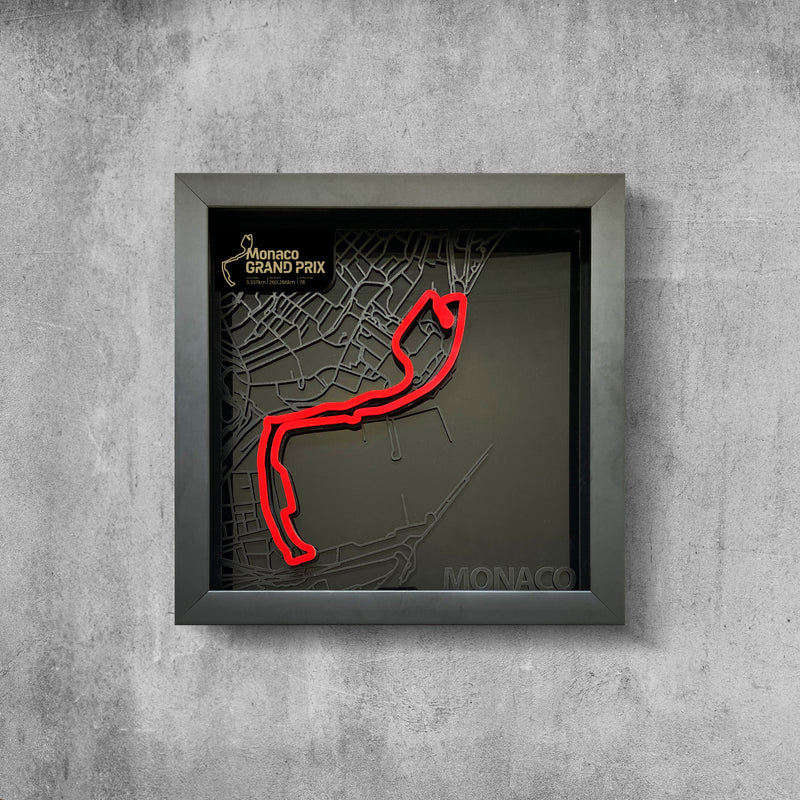 Üç boyutlu katman yapısıyla öne çıkan Monaco pist harita tablosu, dayanıklı ve yüksek kaliteli malzemelerle üretilmiştir. Siyah ahşap çerçevesinin derinliği ve kalınlığı, tasarıma güçlü bir kontrast katar. Modern dekorasyonlara uyum sağlayan bu tablo, koleksiyonerler için benzersiz bir sanat eseridir.