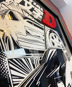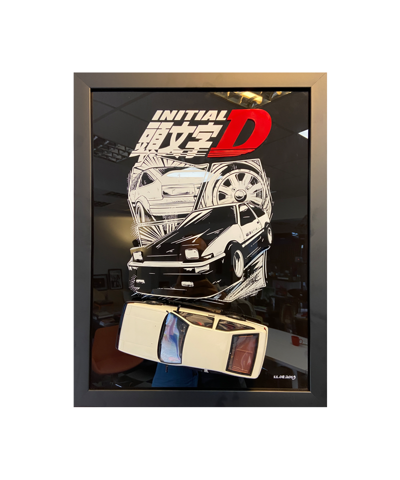 Biz de bu ikonik mirası, 1:18 ölçekli yüksek kaliteli bir modelle özel bir tabloya dönüştürdük. Tabloda kullandığımız AE86 modeli, detaylı işçiliği ve gerçekçiliğiyle adeta bir vitrin parçası. Arka plan tasarımı, hız, özgürlük ve nostalji hissini yansıtacak şekilde özenle hazırlandı.